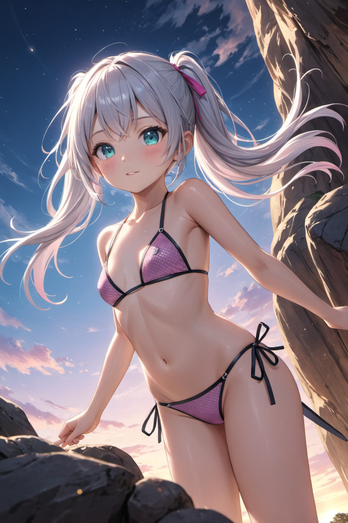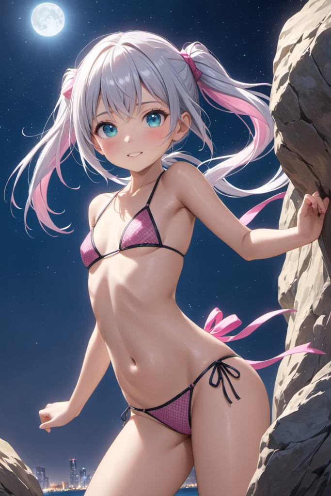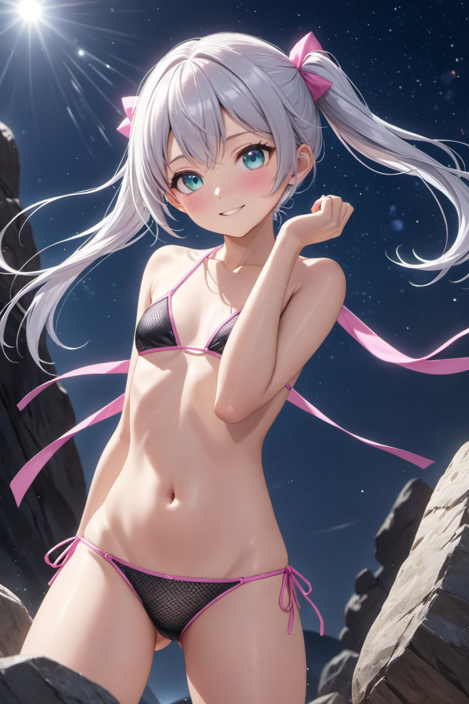 ピンク&黒のメッシュビキニで忍者スタイルの水着着こなしをするさみさん。下部のプロンプトラベルがデザインアーカイブであることを示している。